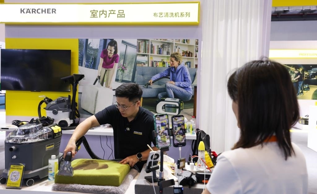 “友友們,現(xiàn)在進(jìn)入‘云’逛消博會(huì)時(shí)間,大家可以通過直播試擦,感受這款鏡面清潔機(jī)的功能?!币贿呍谡古_(tái)發(fā)布新品,一邊引導(dǎo)消費(fèi)者進(jìn)入直播間購(gòu)買,卡赫現(xiàn)場(chǎng)工作人員陳女士忙得不亦樂乎。據(jù)她介紹,這是公司第一次在消博會(huì)上使用直播帶貨形式,“效果不錯(cuò),剛剛就有不少粉絲下單”。