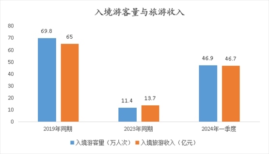 記者今天(4月19日)從北京市文化和旅游局了解到,北京市一季度接待入境游客46.9萬人次,同比增長3.1倍,恢復(fù)到2019年的67.2%;實(shí)現(xiàn)旅游外匯收入6.5億美元,同比增長225.8%,恢復(fù)到2019年的67.4%(折合人民幣46.7億元,增長240.0%,恢復(fù)到2019年的71.9%)。