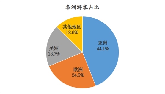 一、近程市場恢復(fù)良好。港澳臺(tái)地區(qū)游客恢復(fù)速度較快,合計(jì)為9.5萬人次,恢復(fù)到2019年的80.1%。游客占比方面,亞洲游客(不包括港澳臺(tái)地區(qū))占比為44.1%,較2019年提升7.2個(gè)百分點(diǎn),東南亞地區(qū)游客恢復(fù)情況最好,其中主要客源國為馬來西亞、泰國、新加坡。