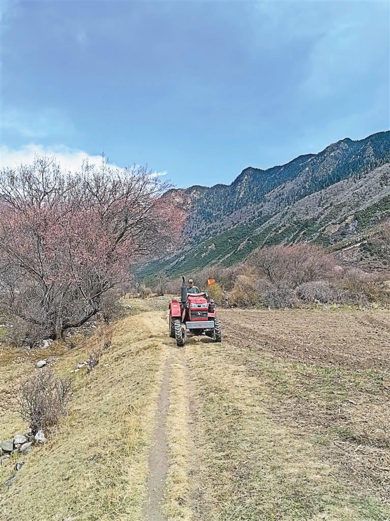 一輛紅色的旋耕機在田地旁停下來,曲美仁增邊換犁頭,邊感嘆著科技帶來的便捷:“以前耕地全靠牲畜,費時耗力,現(xiàn)在開著旋耕機就把地耕完了,聽著這機器轟隆隆的聲音,我覺得格外開心,好像在說我們尼屋的春天特別美,我們的生活肯定也會更幸福!”