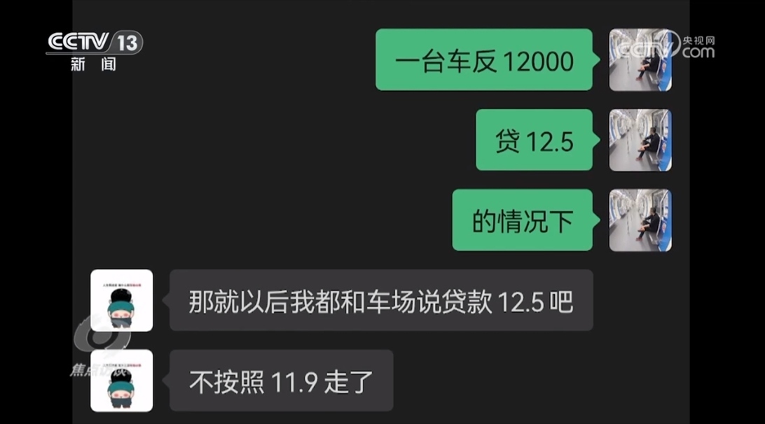 所謂物流公司內(nèi)部的一段聊天記錄顯示,一位司機(jī)購買的一臺車,物流公司的人和貸款公司一起運作,把原本應(yīng)該是11.9萬元的貸款總額提高到12.5萬元,物流公司人員從中可以獲取12000元的返利。