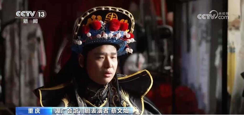 古戲臺(tái)見證了川渝人對(duì)于戲曲的熱情。如今,10多個(gè)平均年齡不到30歲的年輕人每天都會(huì)在這里演出。“90后”的蔡文燦就是川劇變臉的表演者,他已經(jīng)在這里演了五年。