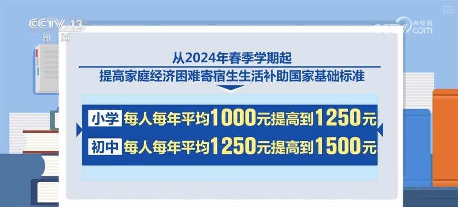 具體來看,此次下達(dá)資金用于提高家庭經(jīng)濟(jì)困難學(xué)生生活補(bǔ)助標(biāo)準(zhǔn)。從2024年春季學(xué)期起提高家庭經(jīng)濟(jì)困難寄宿生生活補(bǔ)助國(guó)家基礎(chǔ)標(biāo)準(zhǔn),小學(xué)由每人每年平均1000元提高到1250元,初中由每人每年平均1250元提高到1500元,家庭經(jīng)濟(jì)困難非寄宿生生活補(bǔ)助標(biāo)準(zhǔn)繼續(xù)按寄宿生生活補(bǔ)助國(guó)家基礎(chǔ)標(biāo)準(zhǔn)的50%核定,預(yù)計(jì)全國(guó)超過2000萬學(xué)生獲得生活補(bǔ)助。