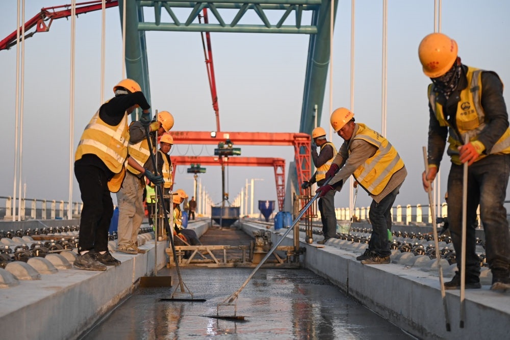 2024年3月20日,中鐵三局建設(shè)者在滬蘇湖鐵路東苕溪特大橋上施工。滬蘇湖鐵路起自上海虹橋站,途經(jīng)江蘇省蘇州市,終至浙江省湖州市湖州站。項目建成運(yùn)營后,將進(jìn)一步完善區(qū)域路網(wǎng)布局,促進(jìn)沿線經(jīng)濟(jì)社會發(fā)展和長三角一體化高質(zhì)量發(fā)展。新華社記者 黃宗治 攝