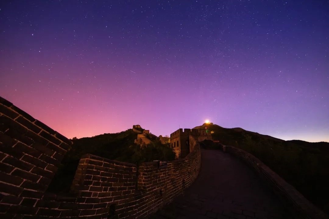 這條巨龍就是北京八達(dá)嶺長(zhǎng)城。夜色下的八達(dá)嶺長(zhǎng)城有著和白天不一樣的美,她更深邃、更安靜,仿佛無聲講述著千百年來的歷史賡續(xù)。
