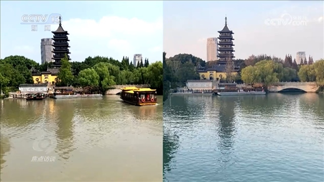 央視網(wǎng)消息(焦點(diǎn)訪談):這里是浙江嘉興的南湖,這兩張南湖的照片分別拍攝于2016年和2021年,同一視角相隔5年,水質(zhì)的變化已經(jīng)清晰可見(jiàn)。今天的南湖水,水草蕩漾,碧波清澈。在過(guò)去7年多的時(shí)間里,南湖水質(zhì)從之前的Ⅴ類,提升至如今的湖庫(kù)Ⅲ類水,這樣的變化是怎么發(fā)生的呢??