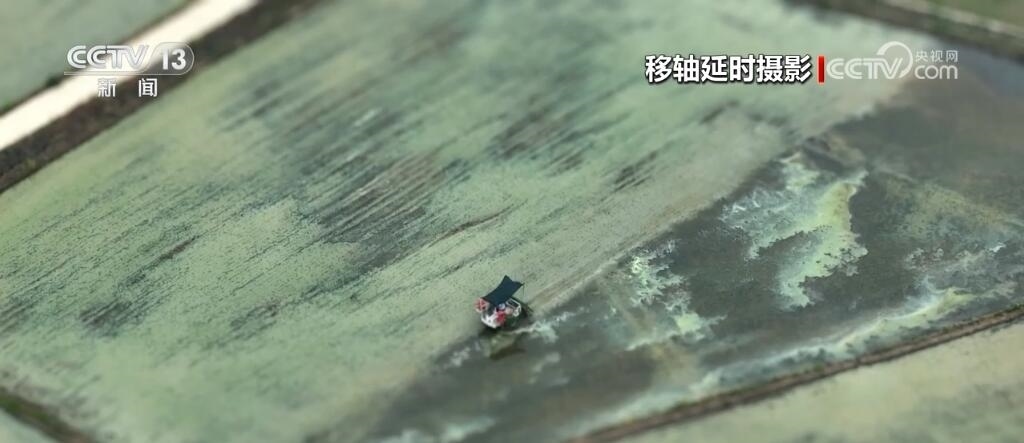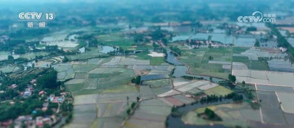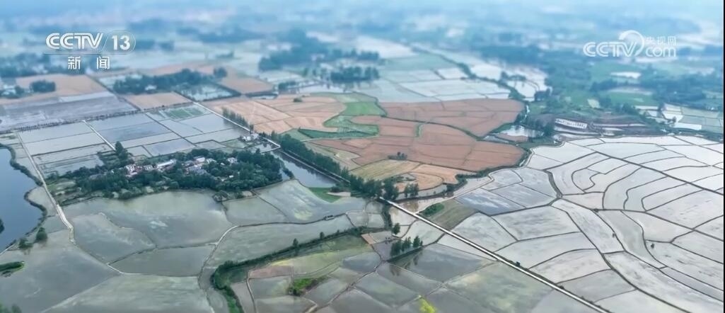 現(xiàn)在您看到的是河南信陽淮河以南的水稻插秧現(xiàn)場。插秧機在田間穿梭,一株株茁壯的秧苗被整齊有序地植入田間,一會兒工夫就插滿了整塊稻田。空中俯瞰,一臺臺插秧機在農(nóng)機手的操控下好似一把把畫刷,在稻田上輕輕暈染,繪就丹青。而同在信陽,淮河以北的麥田里,則是金色的麥浪翻滾起伏,收割機馳騁田間,飽滿的麥穗被卷入機艙,經(jīng)過收割、脫粒,顆粒歸倉。