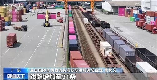 鹽田國際集裝箱碼頭海鐵聯(lián)運(yùn)服務(wù)總經(jīng)理余秋文介紹:“截至今年4月份,我們共開通了14個(gè)海鐵聯(lián)運(yùn)內(nèi)陸港,線路增加至31條,覆蓋了大灣區(qū)、華中、西南等重要的經(jīng)濟(jì)區(qū)域。”