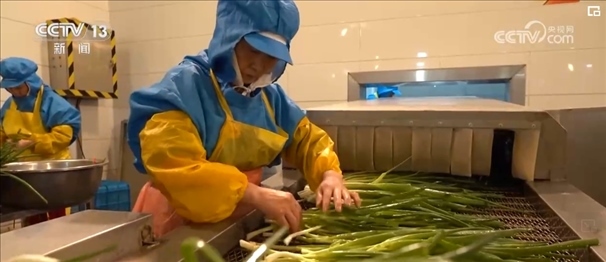 香蔥被運(yùn)輸?shù)疆?dāng)?shù)氐募庸S后,經(jīng)過洗、理、切、分揀裝盤,然后就開始了高科技的“蛻變”之旅。工人先把香蔥放入冷庫冷凍數(shù)小時(shí),然后立即抽真空“升華”干燥,經(jīng)過48小時(shí)左右的一系列工序后,一棵香蔥就變成了脫水蔬菜。留學(xué)回國創(chuàng)業(yè)的王一盛介紹,與過去使用的熱風(fēng)干燥技術(shù)相比,這種新技術(shù)不僅讓垛田香蔥最大程度鎖鮮,價(jià)格也比過去增加了五六倍。