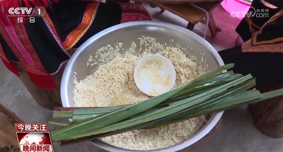 這樣的粽子,造型是不是很像一艘龍舟呢?在廣西賀州市昭平縣仙回瑤族鄉(xiāng)古盤村,村民們將提前準(zhǔn)備好的黃茅草平鋪在簸箕上,放入浸泡好的糯米,包裹成龍舟形狀,再放入大鍋中慢慢蒸煮。煮熟的黃茅粽表皮由綠色變?yōu)辄S褐色。