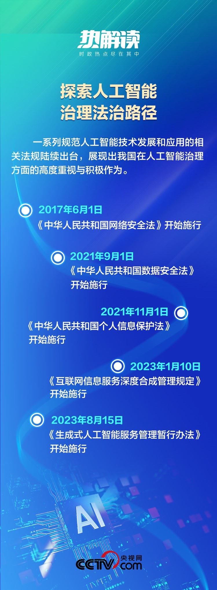 2023年10月,第三屆“一帶一路”國際合作高峰論壇開幕,習(xí)主席宣布中方提出《全球人工智能治理倡議》。這一倡議堅(jiān)持“以人為本、智能向善”,為世界提供了基于人類命運(yùn)共同體理念的人工智能治理新視角。