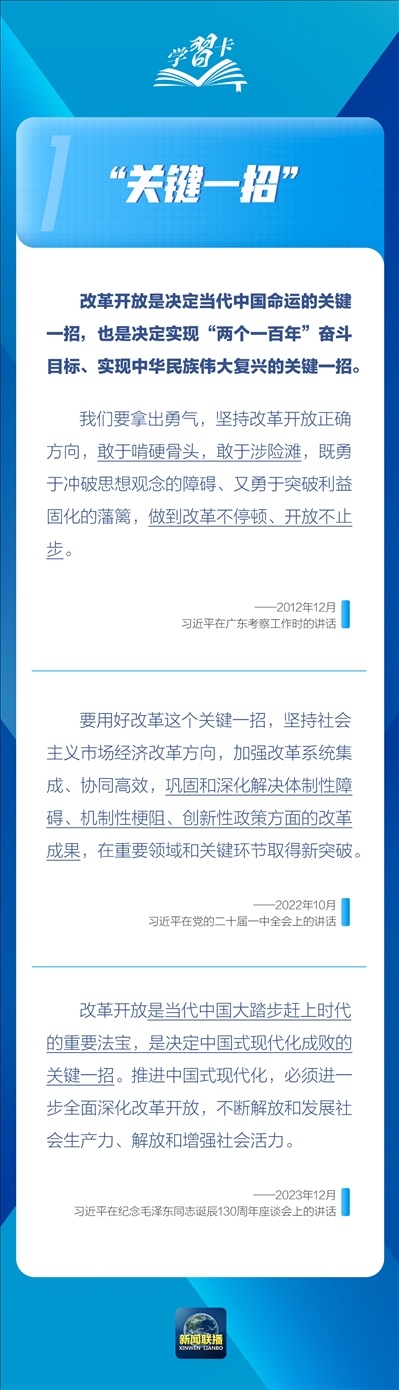 改革開放是當(dāng)代中國大踏步趕上時代的重要法寶,是決定中國式現(xiàn)代化成敗的關(guān)鍵一招。