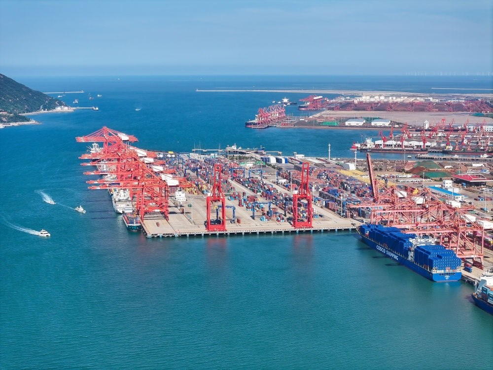 貨輪??吭谶B云港港集裝箱碼頭(2024年6月26日攝,無人機(jī)照片)。
