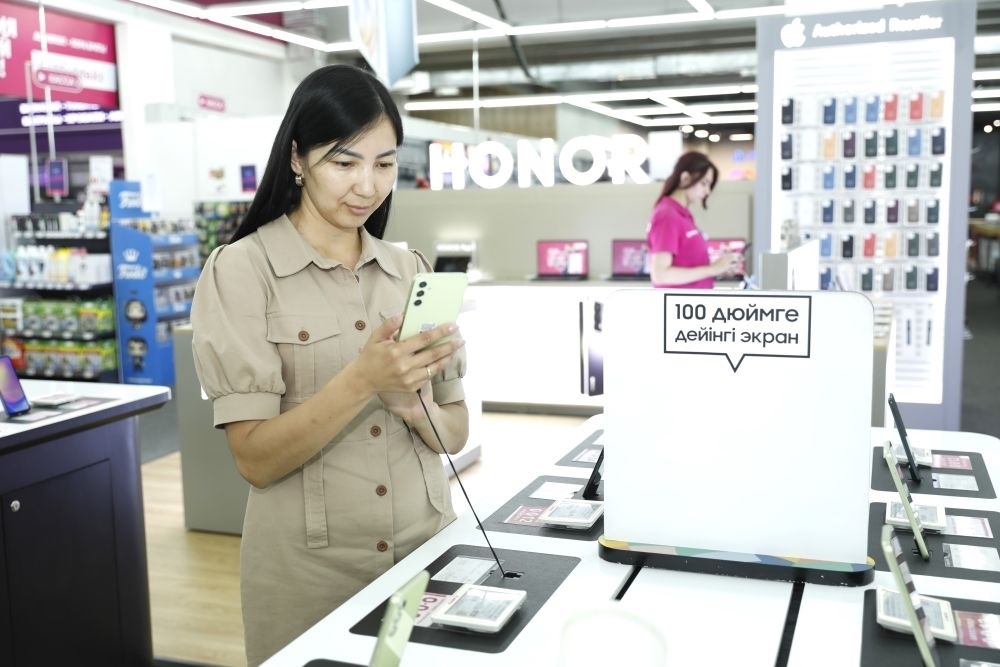 2024年7月1日,顧客在哈薩克斯坦阿斯塔納試用中國品牌手機(jī)。新華社發(fā)(奧斯帕諾夫攝)