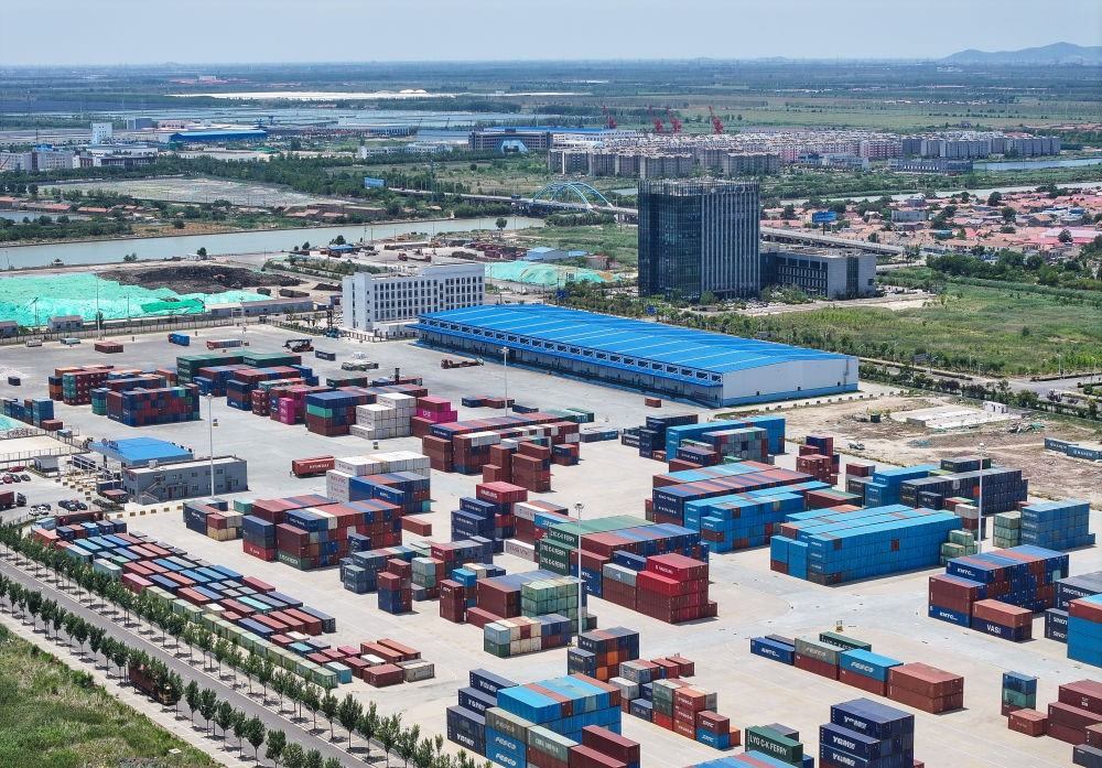 中哈連云港物流合作基地(2024年6月26日攝,無人機(jī)照片)。