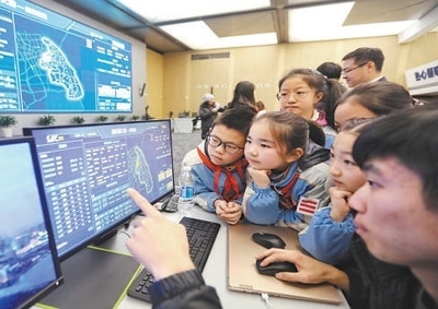 城市治理市民在浦東新區(qū)城市運(yùn)行綜合管理中心參觀。黃日閱攝(人民視覺)