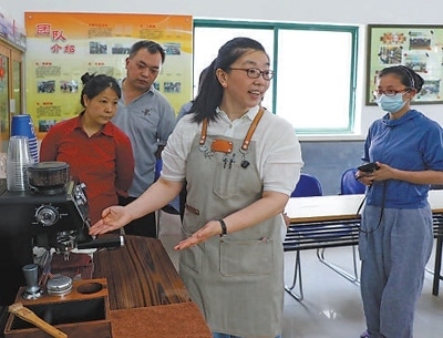 城市治理浦東新區(qū)滬東新村街道壽二就業(yè)服務(wù)站,專業(yè)老師為轄區(qū)10多名人員舉辦咖啡技能體驗(yàn)與培訓(xùn)活動(dòng)。李茂君攝(人民視覺)