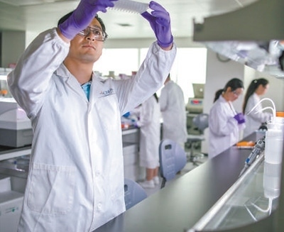 科技創(chuàng)新浦東新區(qū)生物醫(yī)藥創(chuàng)新企業(yè)的青年科學(xué)家正在研發(fā)新一代單克隆抗體。裴 工攝(人民視覺)