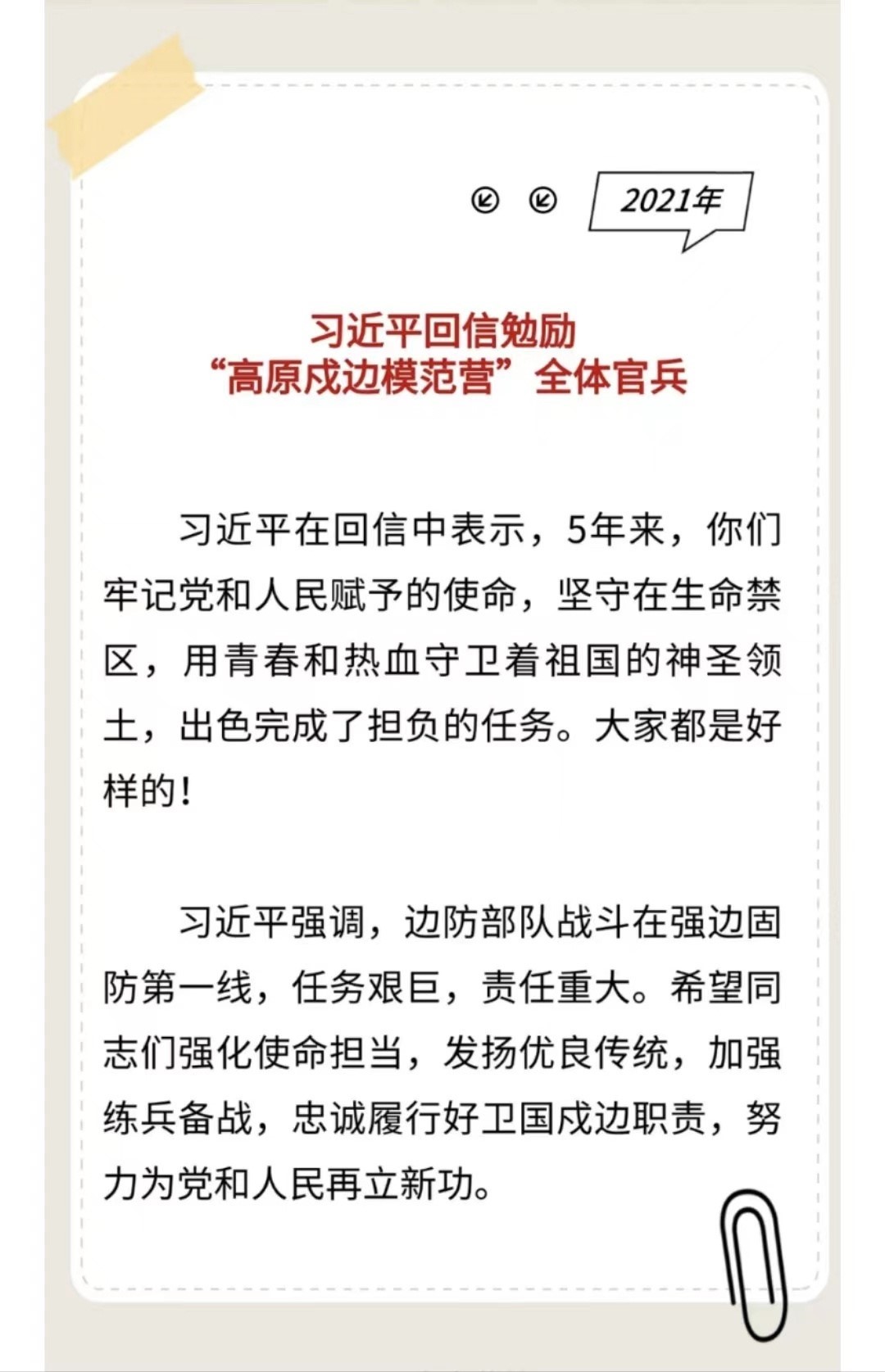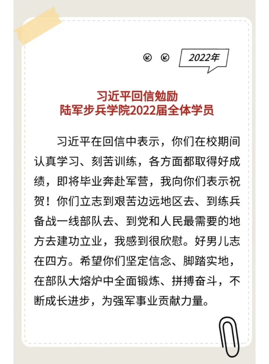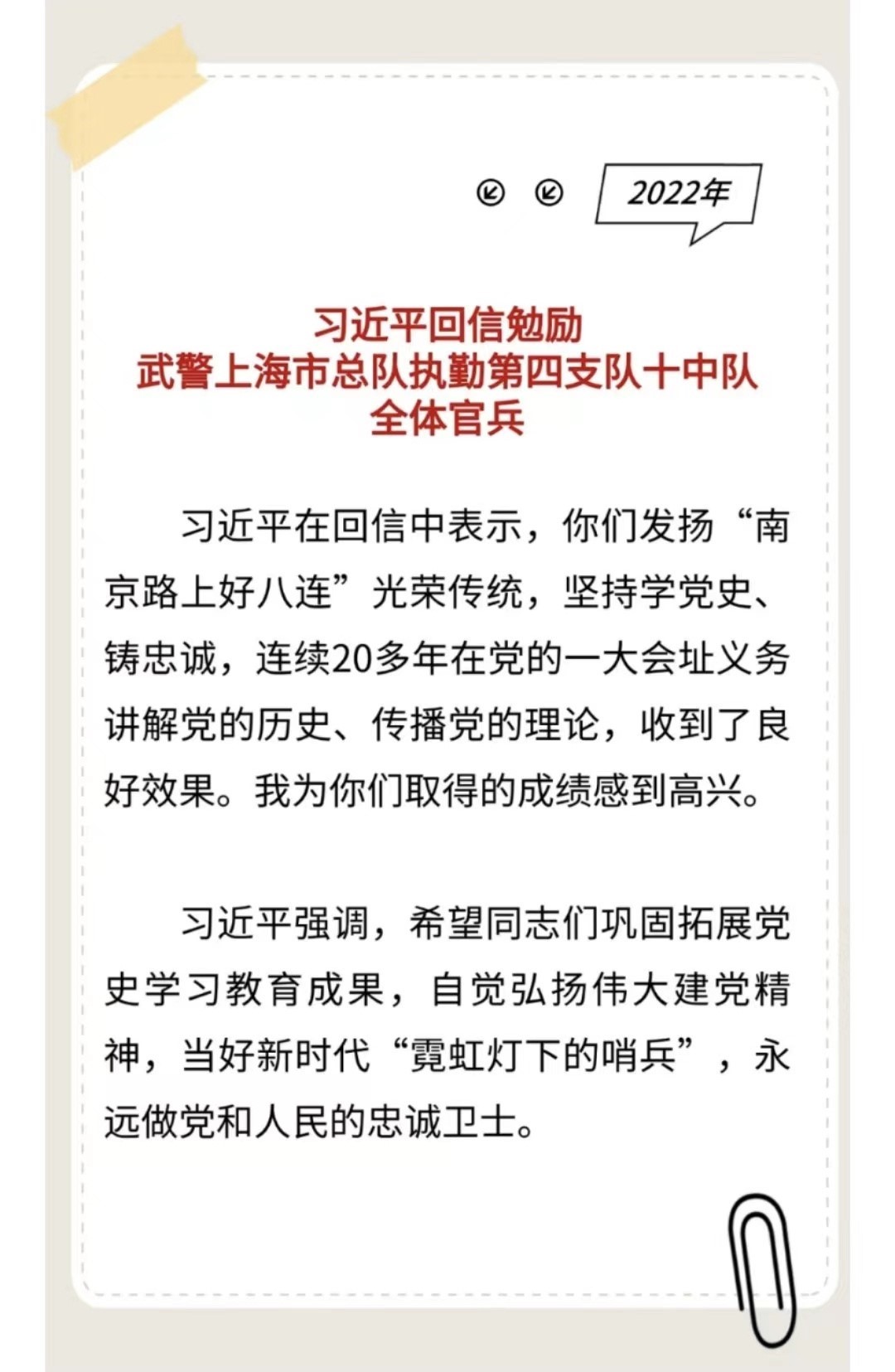 習主席給“強軍精武紅四連”全體官兵回信