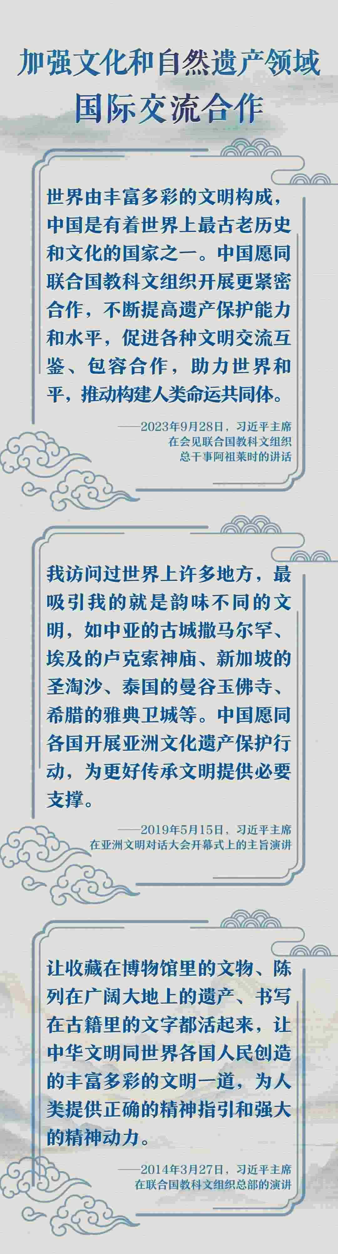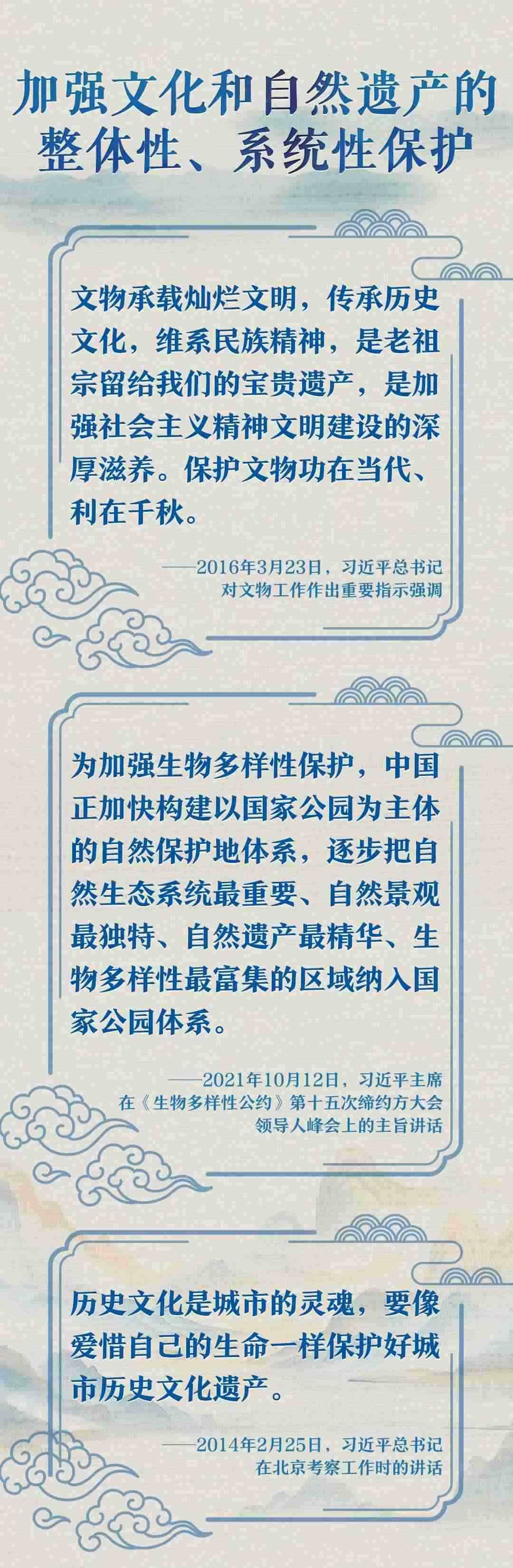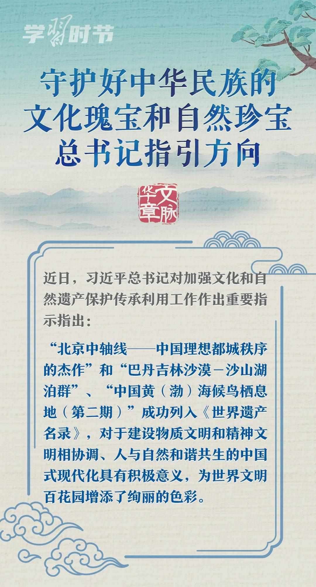 文化遺產(chǎn)體現(xiàn)了中華民族旺盛的生命力和創(chuàng)造力,自然遺產(chǎn)昭示了神奇的自然造化同中華民族的和諧依存關(guān)系。習(xí)近平總書(shū)記一直以來(lái)高度重視文化和自然遺產(chǎn)保護(hù)傳承利用工作,近日專門就此作出重要指示強(qiáng)調(diào),守護(hù)好中華民族的文化瑰寶和自然珍寶,讓文化和自然遺產(chǎn)在新時(shí)代煥發(fā)新活力綻放新光彩。讓我們一同學(xué)習(xí)。