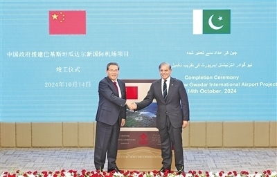 當(dāng)?shù)貢r(shí)間10月14日,國(guó)務(wù)院總理李強(qiáng)在巴基斯坦總理府同巴基斯坦總理夏巴茲共同出席瓜達(dá)爾新國(guó)際機(jī)場(chǎng)項(xiàng)目竣工儀式。新華社記者 丁海濤攝
