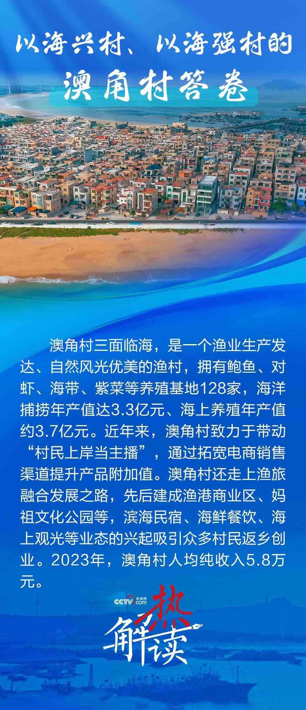 澳角村三面臨海,近年來走出了一條以海興村、以海強(qiáng)村的新路子??吹洁l(xiāng)村發(fā)生了巨變,總書記直言“鄉(xiāng)村振興還是要發(fā)揚(yáng)優(yōu)勢”,并勉勵澳角村做好“?!钡奈恼拢卩l(xiāng)村振興、共同富裕的道路上一往無前。
