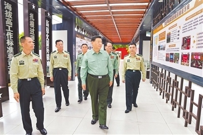 金秋十月,江淮大地山水秀麗、風景如畫。上午11時許,習近平來到火箭軍某旅,首先察看了該旅軍史長廊。該旅是一支有著50多年光榮歷史的戰(zhàn)略導彈部隊。黨的十八大以來,該旅在習近平強軍思想指引下,堅定舉旗鑄魂,大抓實戰(zhàn)化訓練,出色完成一系列重大任務。在反映部隊發(fā)展歷程、新時代全面建設的展板前,習近平詳細了解官兵學習黨的創(chuàng)新理論、加緊練兵備戰(zhàn)、弘揚優(yōu)良傳統(tǒng)等情況。