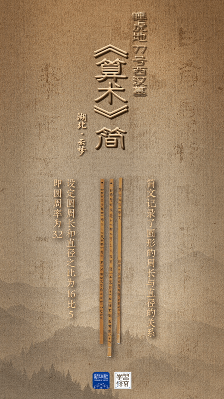 簡(jiǎn)牘里的《算術(shù)》,是古人科學(xué)智慧的精彩呈現(xiàn)。三枚關(guān)于計(jì)算圓形田地面積方法的西漢簡(jiǎn)牘保存完好,為首次公開展出。“有睘將來直十六與五侍之”,睡虎地漢簡(jiǎn)中列舉的這道算術(shù)題顯示,周長(zhǎng)和直徑之比為16:5,即圓周率為3.2,證明秦漢之際已有人認(rèn)識(shí)到比3更精確的圓周率,為出土簡(jiǎn)牘所僅見,尤其珍貴。