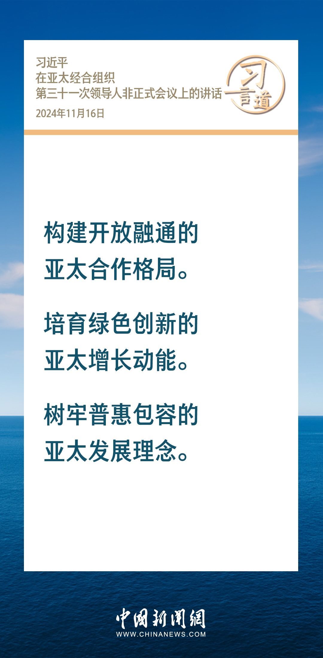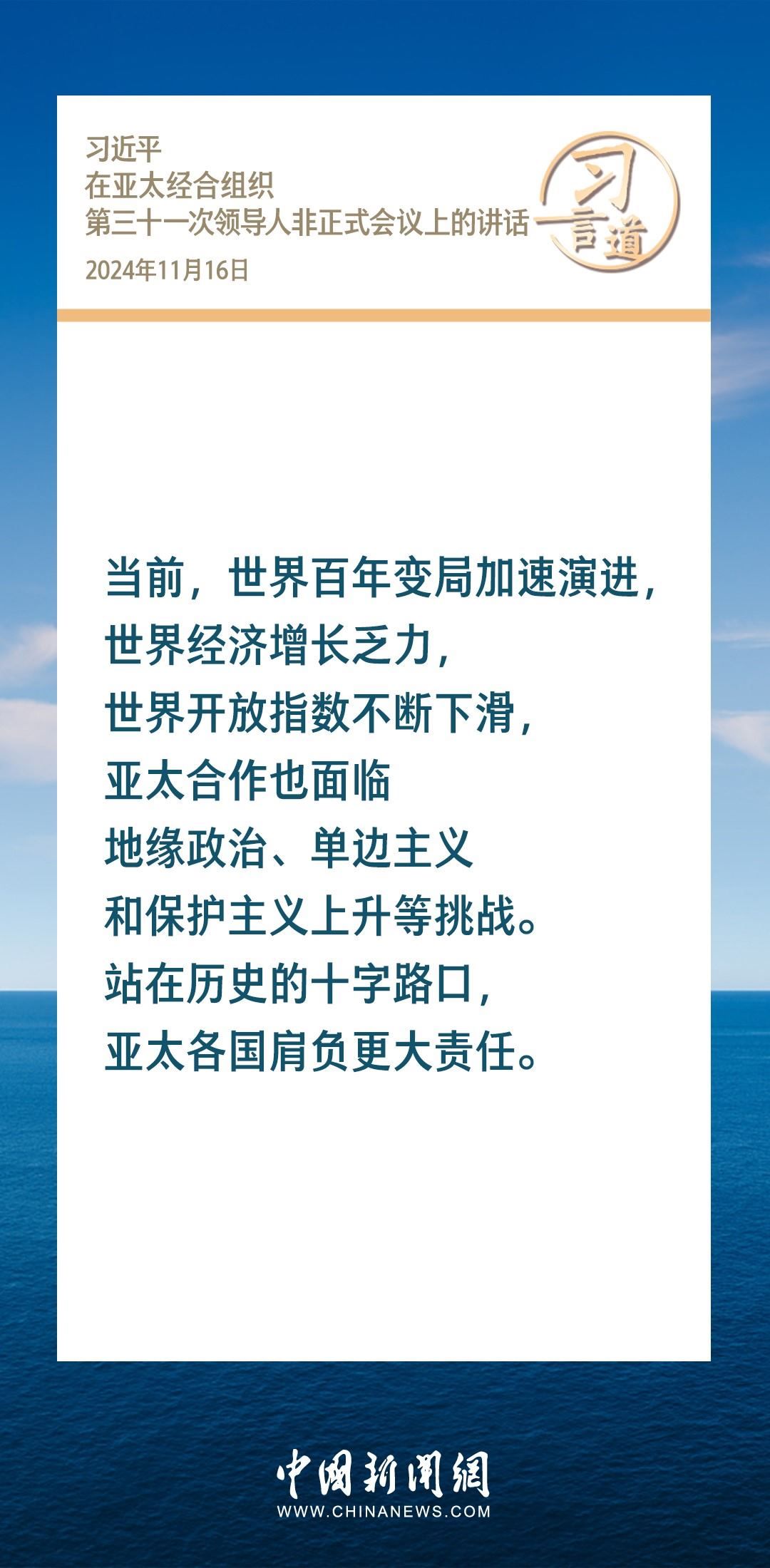 當地時間11月16日,國家主席習近平出席亞太經合組織第三十一次領導人非正式會議并發(fā)表重要講話。習近平指出——