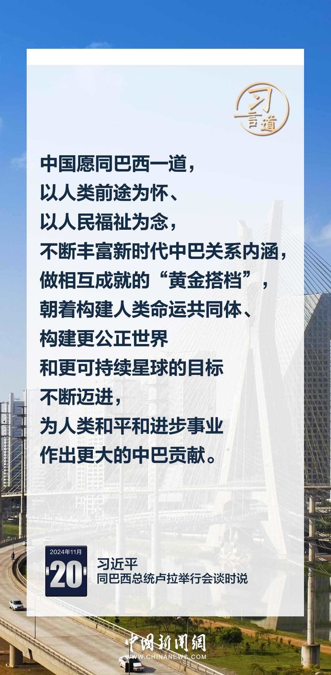 當地時間11月20日,中國國家主席習近平在巴西利亞總統(tǒng)官邸同巴西總統(tǒng)盧拉舉行會談。習近平指出——