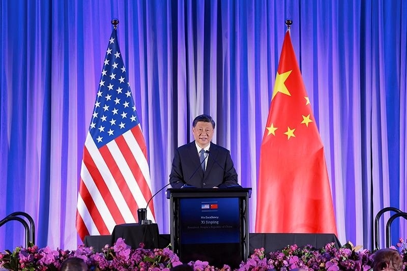 △當(dāng)?shù)貢r(shí)間2023年11月15日,習(xí)近平主席在美國舊金山出席美國友好團(tuán)體聯(lián)合舉行的歡迎宴會(huì)。