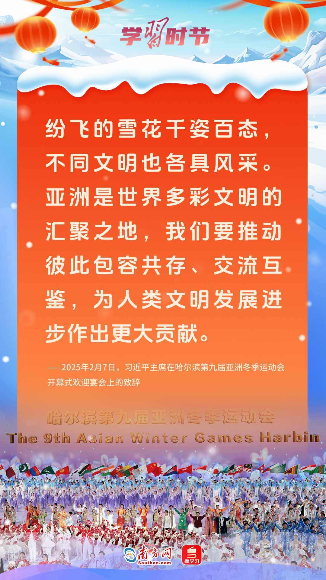當(dāng)下,亞冬會正在如火如荼地舉行,多個項目的角逐進入白熱化階段。本次體育盛會正值中國年,冰雪奇緣與東方文韻交織,奧林匹克精神與中華優(yōu)秀傳統(tǒng)文化同頻共振,共同傳遞著對和平、發(fā)展、友誼的愿望和追求。