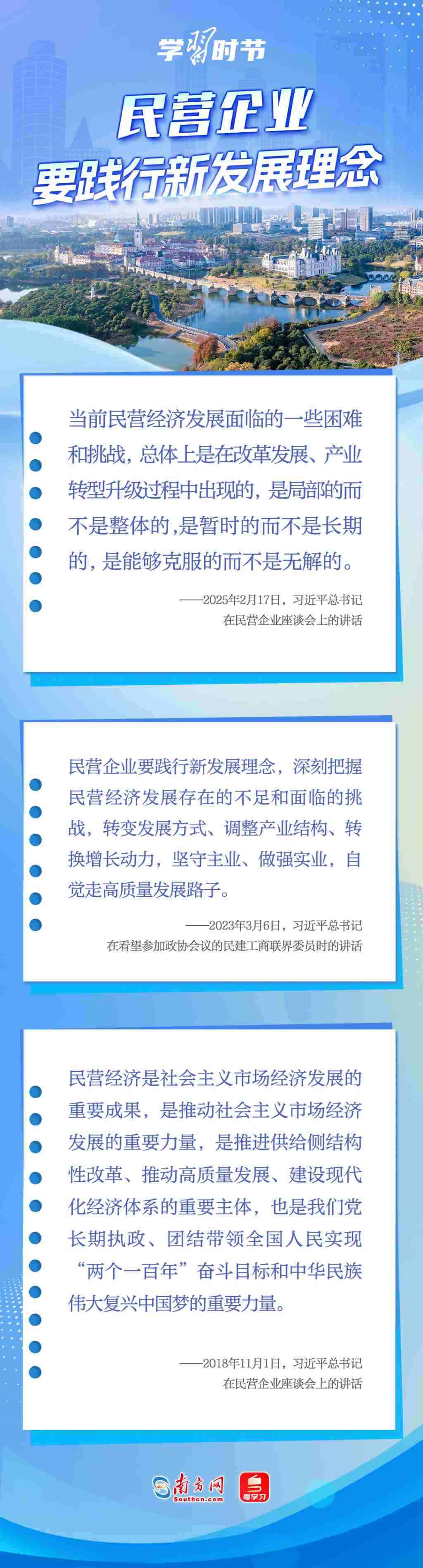 黨的十八大以來(lái),習(xí)近平總書(shū)記對(duì)民營(yíng)經(jīng)濟(jì)發(fā)展高度重視、念茲在茲,多次重申堅(jiān)持“兩個(gè)毫不動(dòng)搖”的重要方針,強(qiáng)調(diào)鼓勵(lì)、支持、引導(dǎo)非公有制經(jīng)濟(jì)繼續(xù)發(fā)展壯大,為實(shí)現(xiàn)民營(yíng)經(jīng)濟(jì)健康發(fā)展、高質(zhì)量發(fā)展注入強(qiáng)大信心和動(dòng)力。讓我們一起學(xué)習(xí)習(xí)近平總書(shū)記關(guān)于民營(yíng)經(jīng)濟(jì)的重要論述,在關(guān)鍵時(shí)刻讓民營(yíng)企業(yè)和民營(yíng)企業(yè)家堅(jiān)定發(fā)展信心,踏踏實(shí)實(shí)謀發(fā)展。