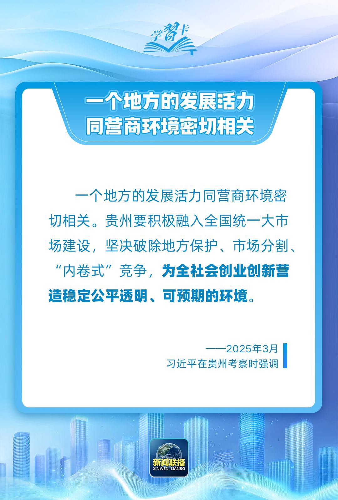 近日,習(xí)近平總書記在貴州考察時(shí)強(qiáng)調(diào),一個(gè)地方的發(fā)展活力同營(yíng)商環(huán)境密切相關(guān)。一起學(xué)習(xí)↓↓