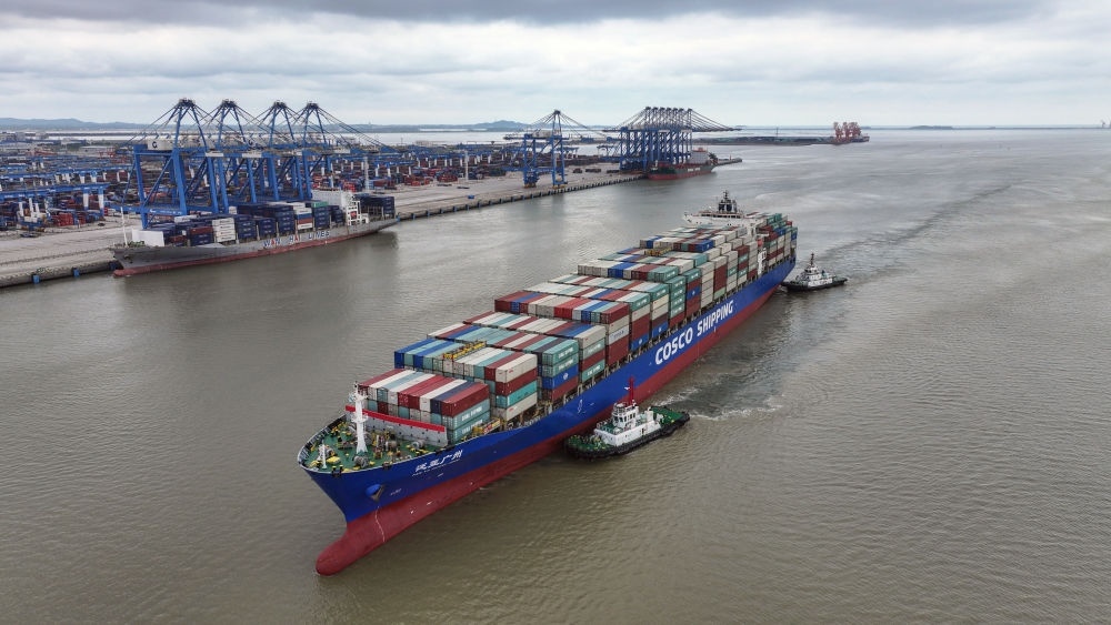 2024年5月19日,一艘海輪在廣西欽州港碼頭靠泊(無(wú)人機(jī)照片)。欽州港是北部灣港的組成部分,也是中國(guó)西南地區(qū)通往東盟的重要出???。西部陸海新通道利用鐵路、公路、水運(yùn)等多種運(yùn)輸方式,由重慶一路向南,經(jīng)廣西北部灣出海通達(dá)世界各地。截至2025年1月1日,北部灣港總航線達(dá)80條,其中外貿(mào)航線49條,基本實(shí)現(xiàn)國(guó)內(nèi)主要港口和東南亞、東北亞主要港口全覆蓋。