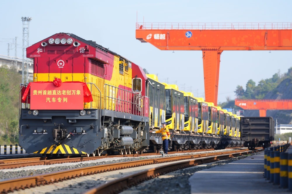 2024年10月28日,裝載著28輛“貴州造”新能源客車(chē)的出口專(zhuān)列停靠在貴陽(yáng)國(guó)際陸港都拉營(yíng)站,準(zhǔn)備經(jīng)由云南磨憨口岸出境前往老撾萬(wàn)象。這是貴州的中老班列首次整列直發(fā),也是貴州本土生產(chǎn)的新能源客車(chē)首次出口老撾。