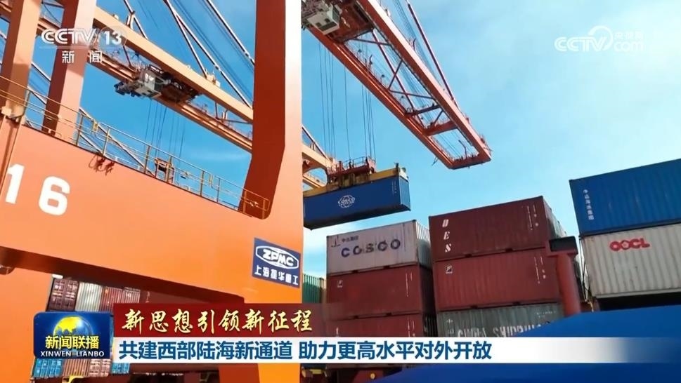 央視網(wǎng)消息(新聞聯(lián)播):建設西部陸海新通道,是以習近平同志為核心的黨中央作出的一項重大決策。習近平總書記指出,要大力推進西部陸海新通道建設,推動沿線地區(qū)開發(fā)開放,深度融入共建“一帶一路”。牢記總書記囑托,今年以來,沿線各地聚焦改革創(chuàng)新、數(shù)字賦能、產(chǎn)業(yè)協(xié)同三大重點任務,高水平建設西部陸海新通道,助力加快形成“陸海內外聯(lián)動、東西雙向互濟”的對外開放新格局。