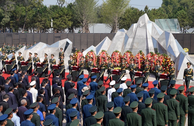 9月13日,第十二批在韓中國(guó)人民志愿軍烈士遺骸安葬儀式在沈陽(yáng)抗美援朝烈士陵園舉行。30位志愿軍烈士英靈,在闊別祖國(guó)70多年后回到中華大地安息。