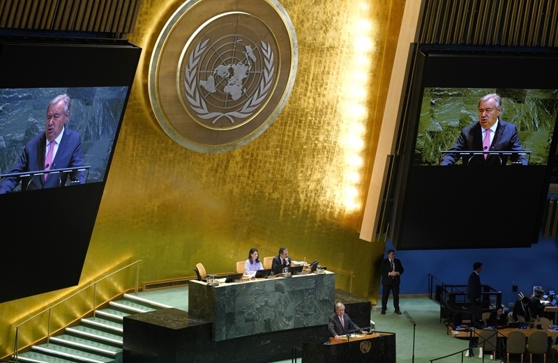 9月22日,在位于紐約的聯(lián)合國(guó)總部,聯(lián)合國(guó)秘書長(zhǎng)古特雷斯在紀(jì)念北京世婦會(huì)30周年高級(jí)別會(huì)議上講話。