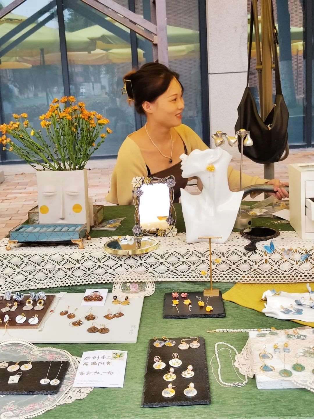 畢業(yè)于湖北美術(shù)學(xué)院陶瓷藝術(shù)專業(yè)的楊帆,2020年放棄本校讀研的機會,選擇到江西景德鎮(zhèn)創(chuàng)業(yè),主打陶瓷首飾創(chuàng)作?!耙郧澳芟氲降木蜆I(yè)方向是當(dāng)美術(shù)老師或者開陶吧,直到在景德鎮(zhèn)看到另一種可能?!睏罘f,大四那年,景德鎮(zhèn)的陶溪川創(chuàng)意集市邀請她們學(xué)校師生去擺攤,讓她看到了一種新生活——夜幕降臨后,幾百個年輕人一起出攤把作品賣出去。
