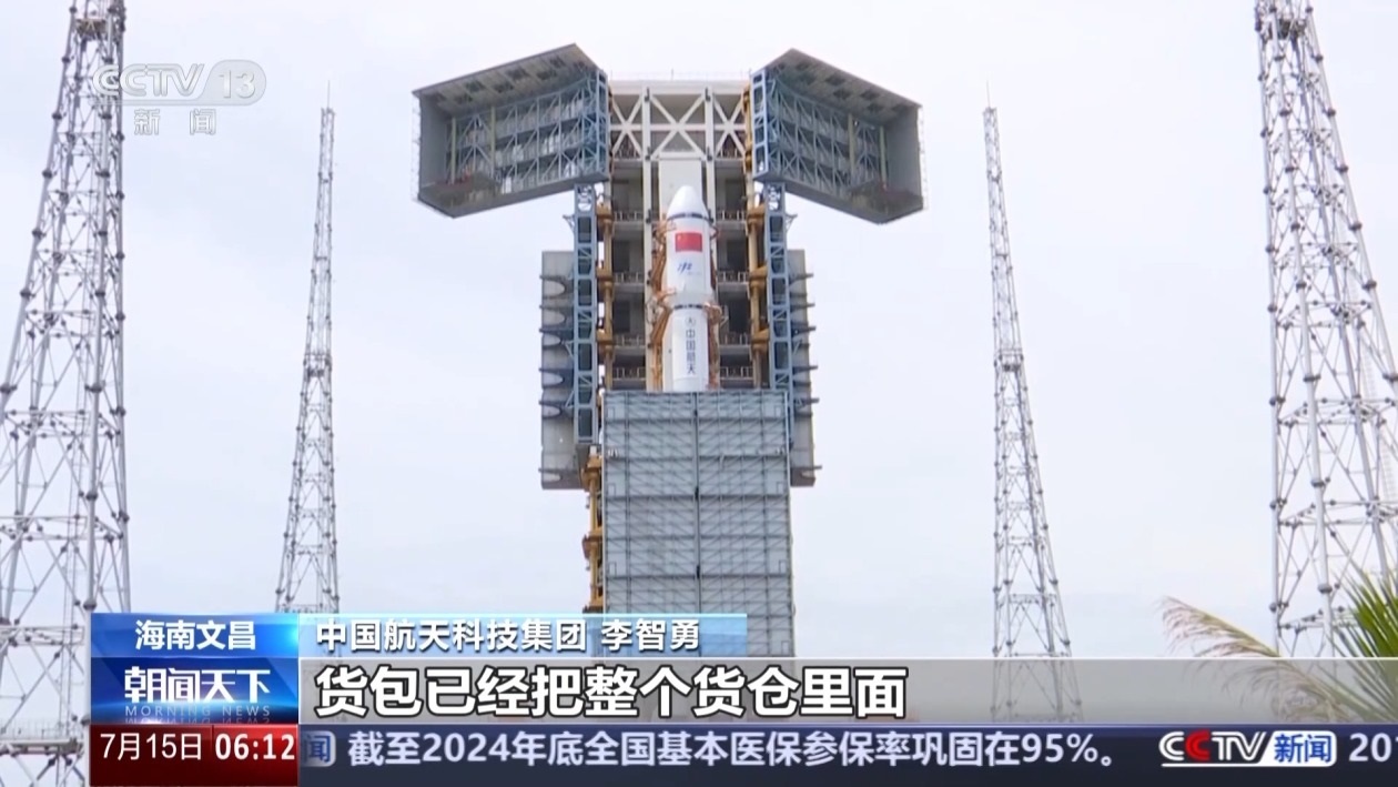 中國航天科技集團 李智勇:裝貨量特別大,天舟九號是天舟六號以來裝貨量最大的一次,這個貨包已經(jīng)把整個貨倉里面堆滿了,而且有些地方還突出來了。