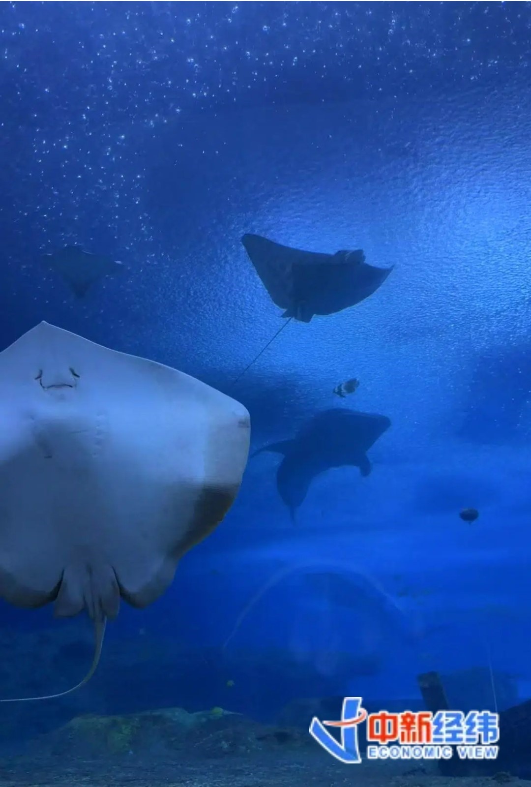 在海底區(qū),小林感到自己仿佛來到了海底世界的IMAX影廳,抬頭就能看到各種海底生物在頭上游過。晚上工作人員還會(huì)撤去警戒線,讓他們能與動(dòng)物更加貼近。“那個(gè)時(shí)候的體驗(yàn),就是‘藍(lán)調(diào)時(shí)刻’,幽靜又神秘,抬頭就能看到鯨鯊巨物從頭頂游過。夜深一些,還能看到有小魚沉底睡覺休息?!毙×终f道。