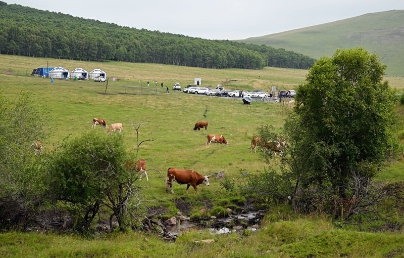7月24日,自駕游客的車(chē)輛停泊在內(nèi)蒙古自治區(qū)赤峰市克什克騰旗草原的一處牧家樂(lè)。