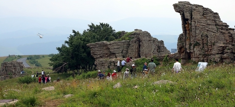 7月24日,空中觀(guān)光直升機(jī)從內(nèi)蒙古自治區(qū)赤峰市克什克騰旗阿斯哈圖石林上空飛過(guò)。