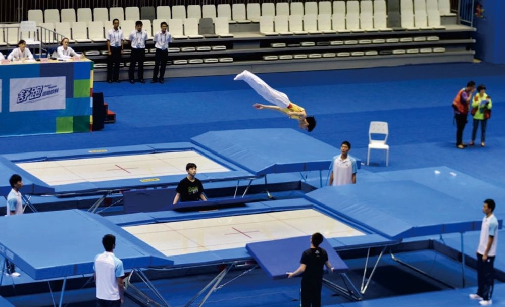 圖為蹦床項(xiàng)目比賽。圖片來自第12屆世運(yùn)會網(wǎng)上新聞中心