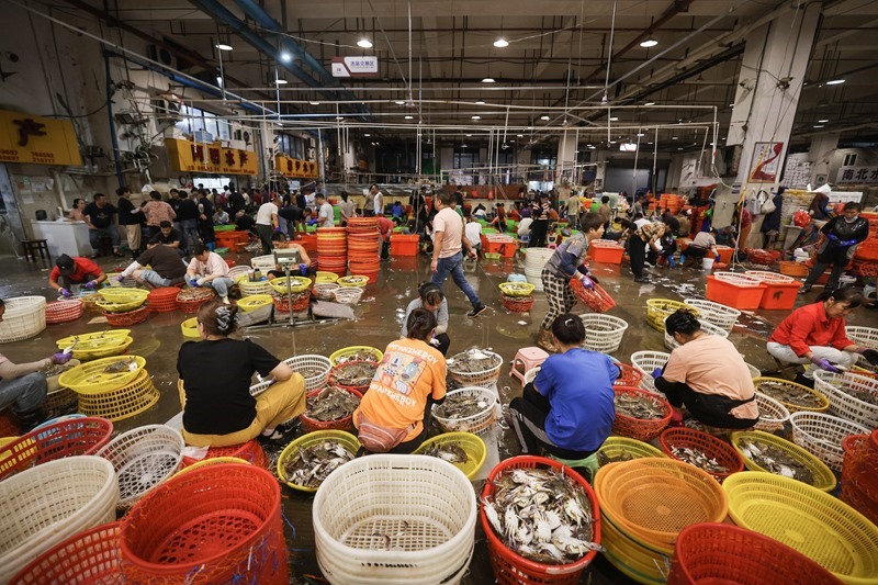 舟山沈家門(mén)漁港舟山國(guó)際水產(chǎn)城的商戶們迎來(lái)了忙碌的時(shí)節(jié),近期每天約有2000噸梭子蟹到港,經(jīng)過(guò)分揀、綁扎后發(fā)往各地市場(chǎng)。