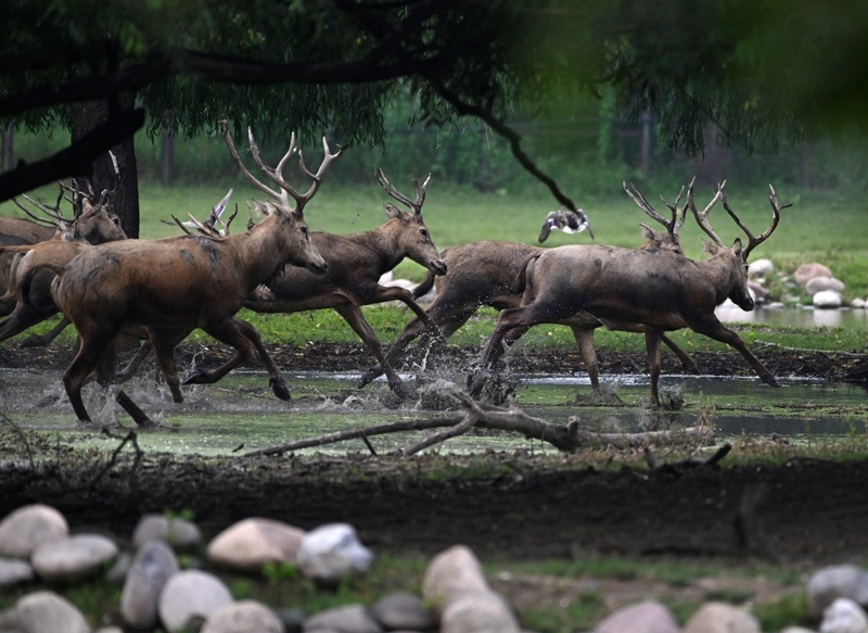 8月18日在北京麋鹿苑拍攝的麋鹿。