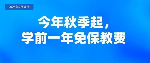 國務(wù)院辦公廳印發(fā)《關(guān)于逐步推行免費學(xué)前教育的意見》。從2025年秋季學(xué)期起,免除公辦幼兒園學(xué)前一年在園兒童保育教育費。對在教育部門批準(zhǔn)設(shè)立的民辦幼兒園就讀的適齡兒童,參照當(dāng)?shù)赝愋凸k幼兒園免除水平,相應(yīng)減免保育教育費。財政部、教育部將統(tǒng)籌考慮學(xué)齡人口變化、財力狀況等因素,研究適時完善免費學(xué)前教育政策。西藏,四川、云南、甘肅、青海四省涉藏州縣,新疆喀什、和田、阿克蘇、克孜勒蘇柯爾克孜四地州等地區(qū)在園兒童繼續(xù)執(zhí)行現(xiàn)行政策。