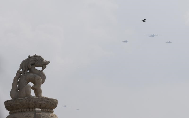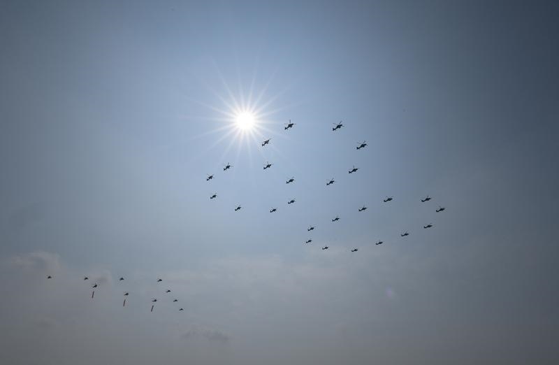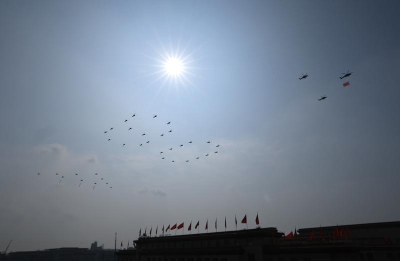 9月3日,紀(jì)念中國人民抗日戰(zhàn)爭暨世界反法西斯戰(zhàn)爭勝利80周年大會在北京隆重舉行。這是教練機(jī)梯隊接受檢閱。