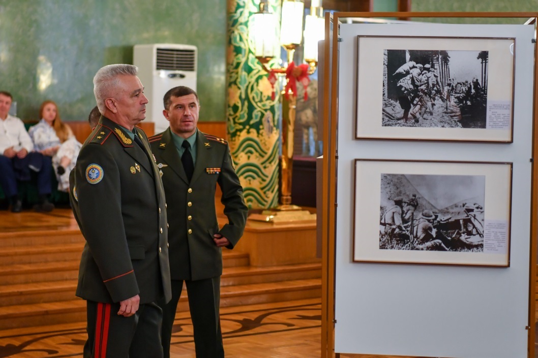 7月24日,在俄羅斯首都莫斯科,嘉賓參觀紀(jì)念中國人民抗日戰(zhàn)爭暨世界反法西斯戰(zhàn)爭勝利80周年圖片展。新華社記者 曹陽 攝